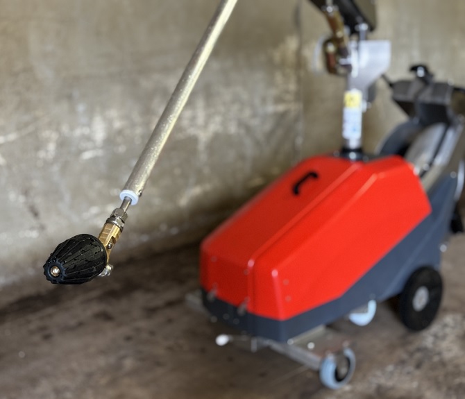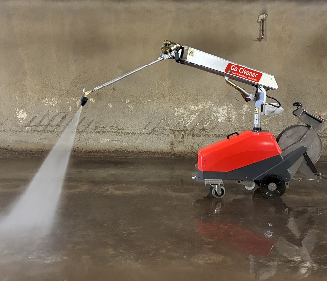 - Pentru a duce robotul in hala dorita sau adapostul ce urmeza a fi spalat, acesta nu trebuie impins: robotul GO Cleaner are motor electric, este autotractabil. Este directionat prin simpla apasare a unor butoane