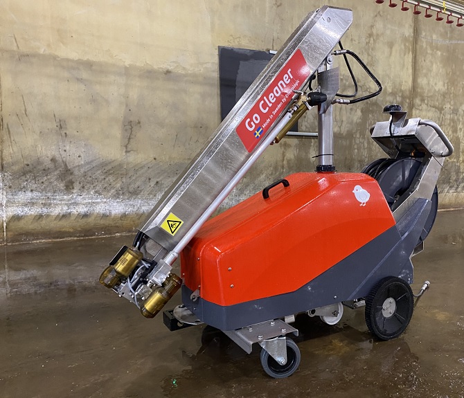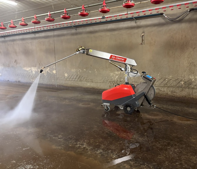 Robotul GO Cleaner a fost adaptat special de catre Envirologic AB pentru a spala cu succes fermele de pasari.
